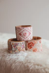 Nuestras pulseras están confeccionadas a mano con una base de cuero genuino y retazos de telas bordadas recuperadas, lo que convierte a cada pieza en un diseño único y lleno de identidad.